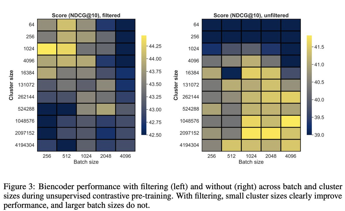 Language models have seen extreme success from training longer on more data with more parameters. Embedding models haven’t seen similar returns to investment: typically we see embedding models don’t improve much from training on larger document sizes. It depends on the setting, but performance tends to plateau on training sets around 10M document-document pairs. No one is training on billions of pairs (and if it worked, they surely would be).